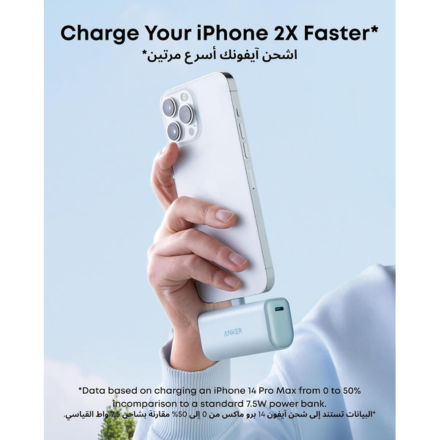 The Anker 621 Nano Power Bank is a compact and lightweight portable charger designed specifically for Apple devices. It features a built-in Lightning connector, allowing you to plug it directly into your iPhone without carrying extra cables. With a 5000mAh battery capacity and 12W output, it provides reliable backup power for everyday use—ideal for travel, commuting, or emergencies.