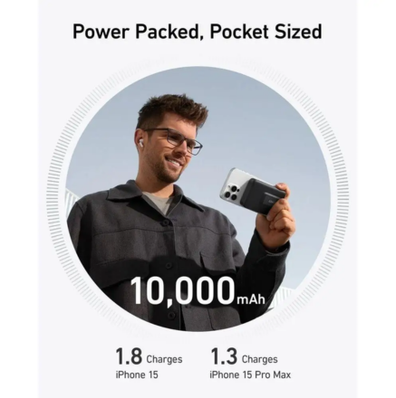 • 10,000mAh Capacity: Provides up to ~1.8 full charges for an iPhone 15 Pro