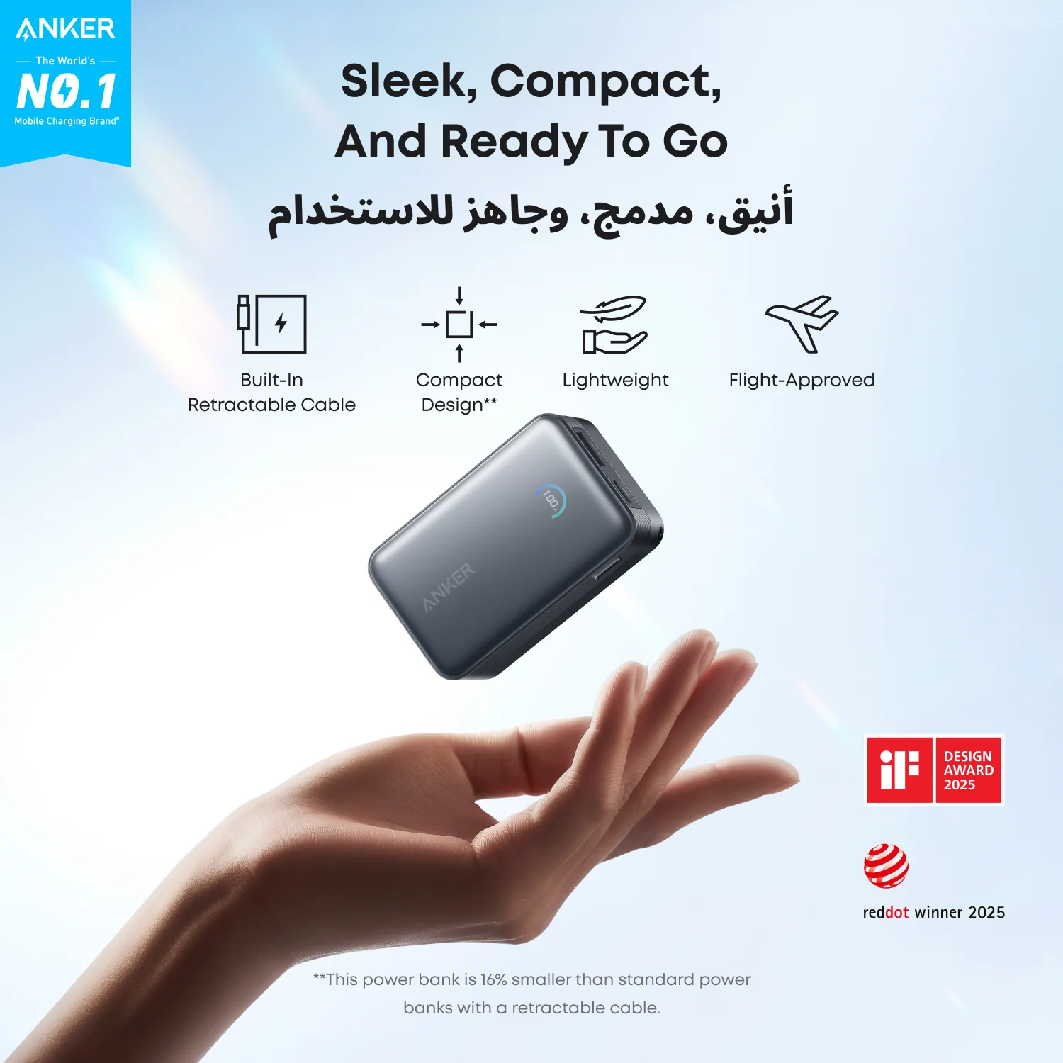 - Sleek and Portable: Designed for life on the go, this power bank is 16% smaller than standard models with a retractable cable, making it easy to carry. Plus, it is flight-approved.
