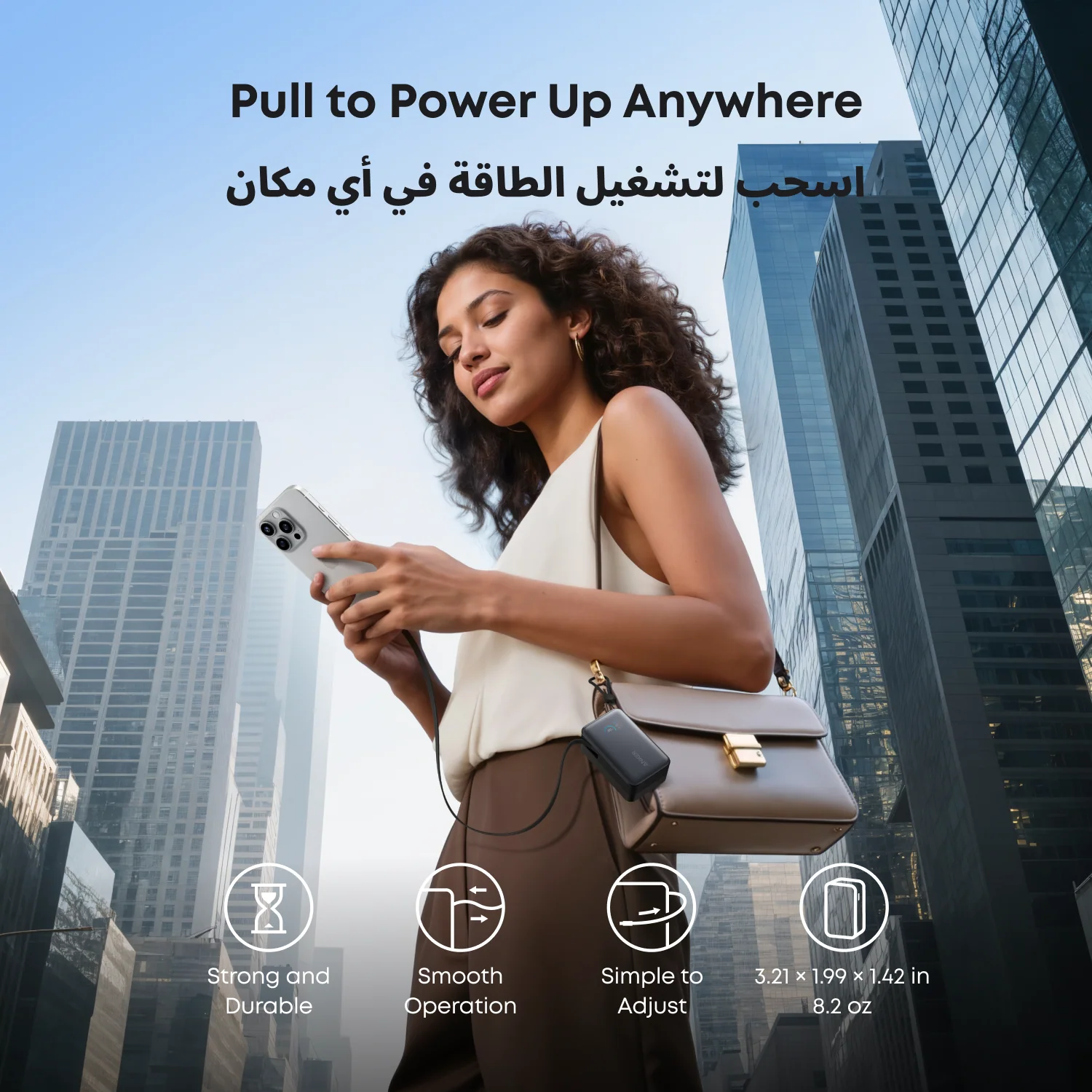 - Pull, Adjust, and Charge: Seamlessly power up with a pull of the durable, built-in retractable cable, capable of over 20,000 bends. Charge neatly and efficiently without the hassle of tangled wires.