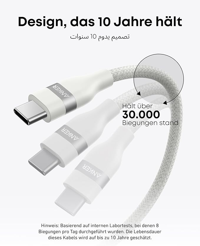- Ultra-Durable Charging Cable:Â With a 30,000+ bend lifespan and the ability to withstand 220 lbs without breaking, this cable is built to last over 10 years.