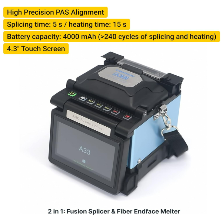 Comway A33 Fusion Splicer | 2-in-1 Fiber Optic Fusion Splicing Machine Kit, Portable Kit with Battery & Cleaver