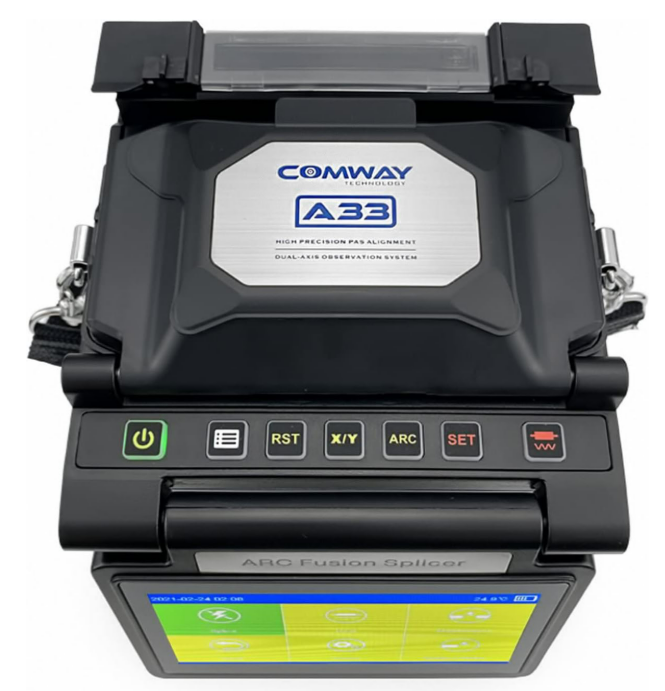 Comway A33 is a fusion splicer and a fiber endface melter, all in one. It is a powerful and stable tool with high precision PAS alignment system. The fusion splicer is equipped with a high-performance heater that provides a faster and more power-saving machining process, and a stable and durable ceramic fiber presser.