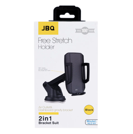 The JBQ 2-in-1 Free Stretch Holder is a versatile and convenient solution for securely mounting your smartphone in your car. Designed for both air outlet and dashboard installation, this holder provides a stable grip and 360-degree rotation for optimal viewing angles. Its durable design and extendable arm make it suitable for various road conditions, offering flexibility and ease of use during your drives.