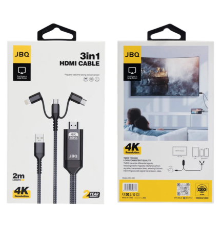 JBQ 3-in-1 (Micro USB, Lightning, Type C) Mobile HDMI Cable – 2M Length, 4K Resolution, [MH-088]