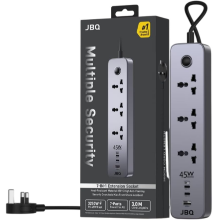 The JBQ 7-in-1 Power Strip Extension Cord with USB-C 45W is designed to provide ultimate convenience and efficiency for your everyday power needs. Equipped with multiple AC outlets, fast-charging USB ports, and a high-speed USB-C 45W output, it can power and charge a variety of devices simultaneously. Its compact, travel-friendly design makes it perfect for home, office, or on-the-go use. Built with advanced safety features, including surge protection and overload protection, it ensures safe charging for your valuable electronics. With versatile connectivity and reliable performance, this power strip is the perfect solution for modern lifestyle and productivity.