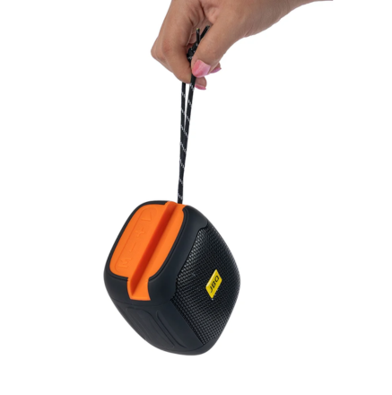 Take your music anywhere with the JBQ Portable Wireless Bluetooth Speaker, designed for high-fidelity sound in a compact, travel-friendly form. This sleek speaker delivers crisp audio performance, whether you’re relaxing at home or adventuring outdoors. With its rugged black body, accented with signature JBQ yellow and a bold orange top, this speaker stands out in both design and performance.