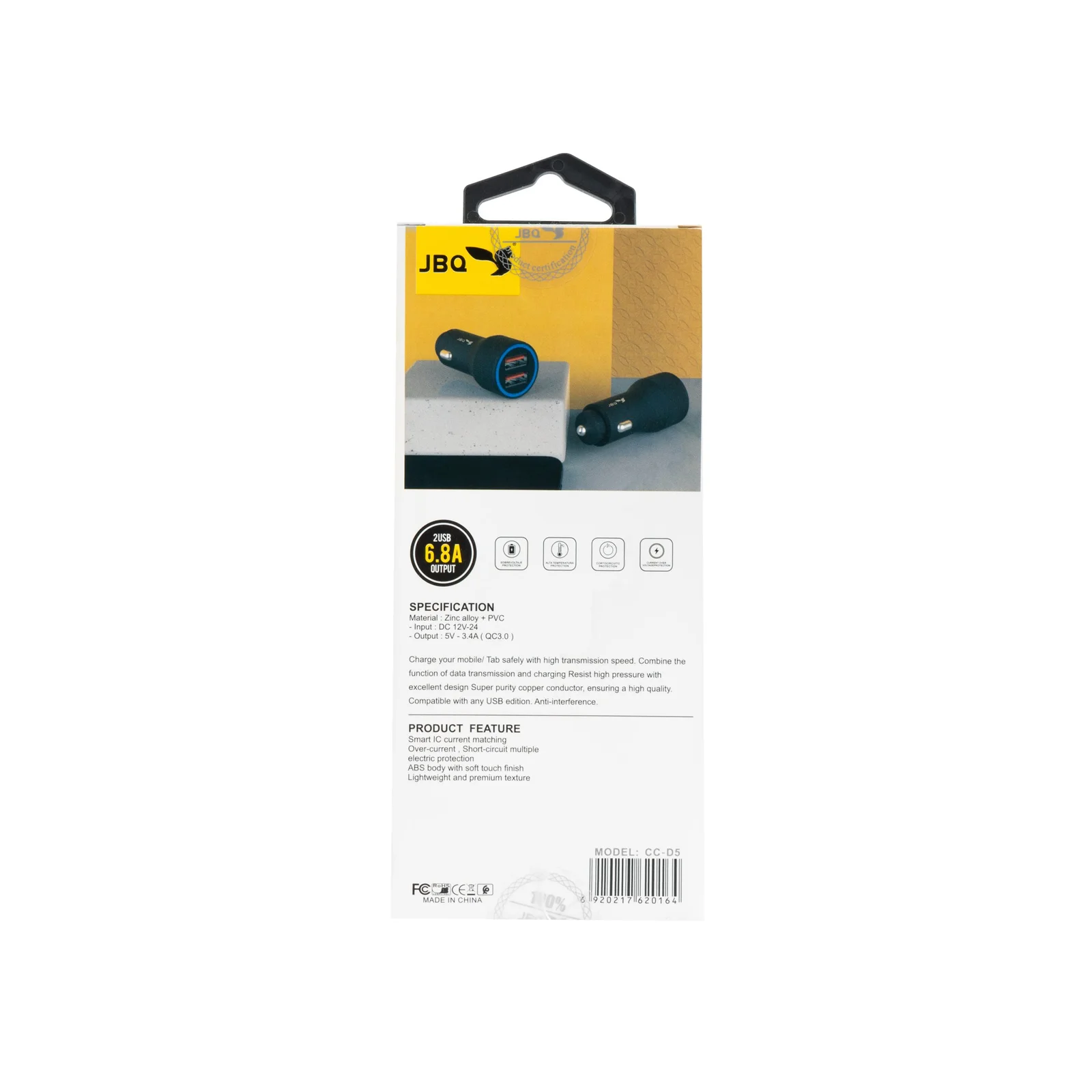 JBQ QC3.0 Dual USB Fast Car Charger – 6.8A Output CC-D5 (w/ Usb Type C Cable/QC.3)