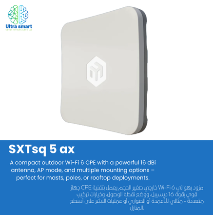 Meet the SXTsq 5 ax – our first Wi-Fi 6 outdoor CPE, combining the best wireless technology with our trusted, compact SXTsq form factor.