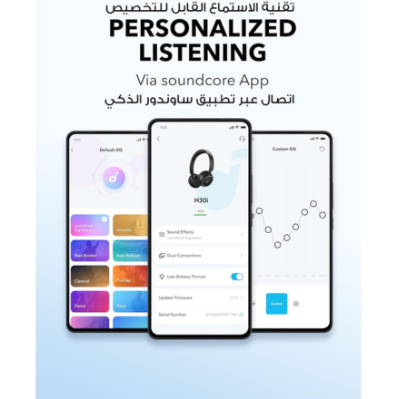 The Soundcore H30i headphones deliver powerful, bass-rich sound thanks to their 40mm oversized drivers, tuned to enhance low frequencies for a more immersive music experience. Whether you’re listening to music, watching videos, or taking calls, the audio remains clear and dynamic.
