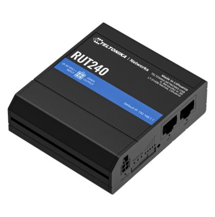 The Teltonika RUT240 4G LTE Router is a compact yet powerful industrial-grade cellular router designed for reliable and secure internet connectivity in demanding environments. Equipped with 4G LTE, WiFi, and dual Ethernet ports, it ensures seamless connectivity for IoT, M2M, and remote monitoring applications.