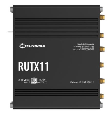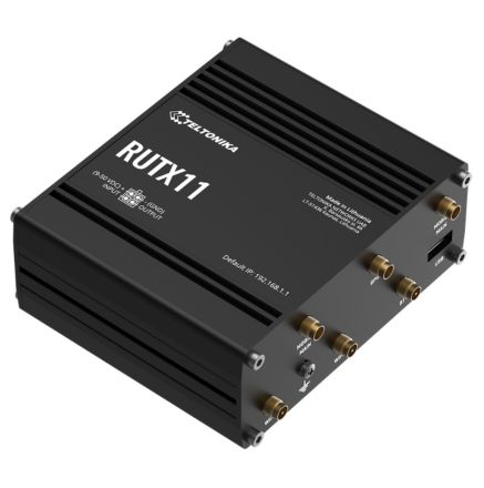 The Teltonika RUTX11 is a high-performance industrial LTE Cat 6 router designed for mission-critical IoT and enterprise connectivity. Built for stability, speed, and remote management, it delivers reliable 4G LTE, WiFi 5, and wired Gigabit networking in demanding environments. Ideal for industrial automation, retail networks, transport, and remote monitoring applications.